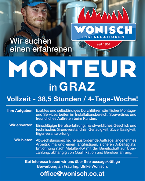 Stellenausschreibung - Wonisch Installationen - Monteur in Graz (JPG. 325 KB)