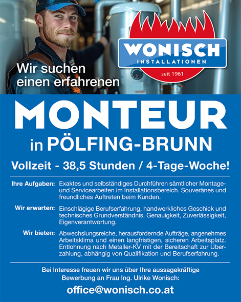 Stellenausschreibung - Wonisch Installationen - Monteur in Pölfing-Brunn (JPG. 325 KB)